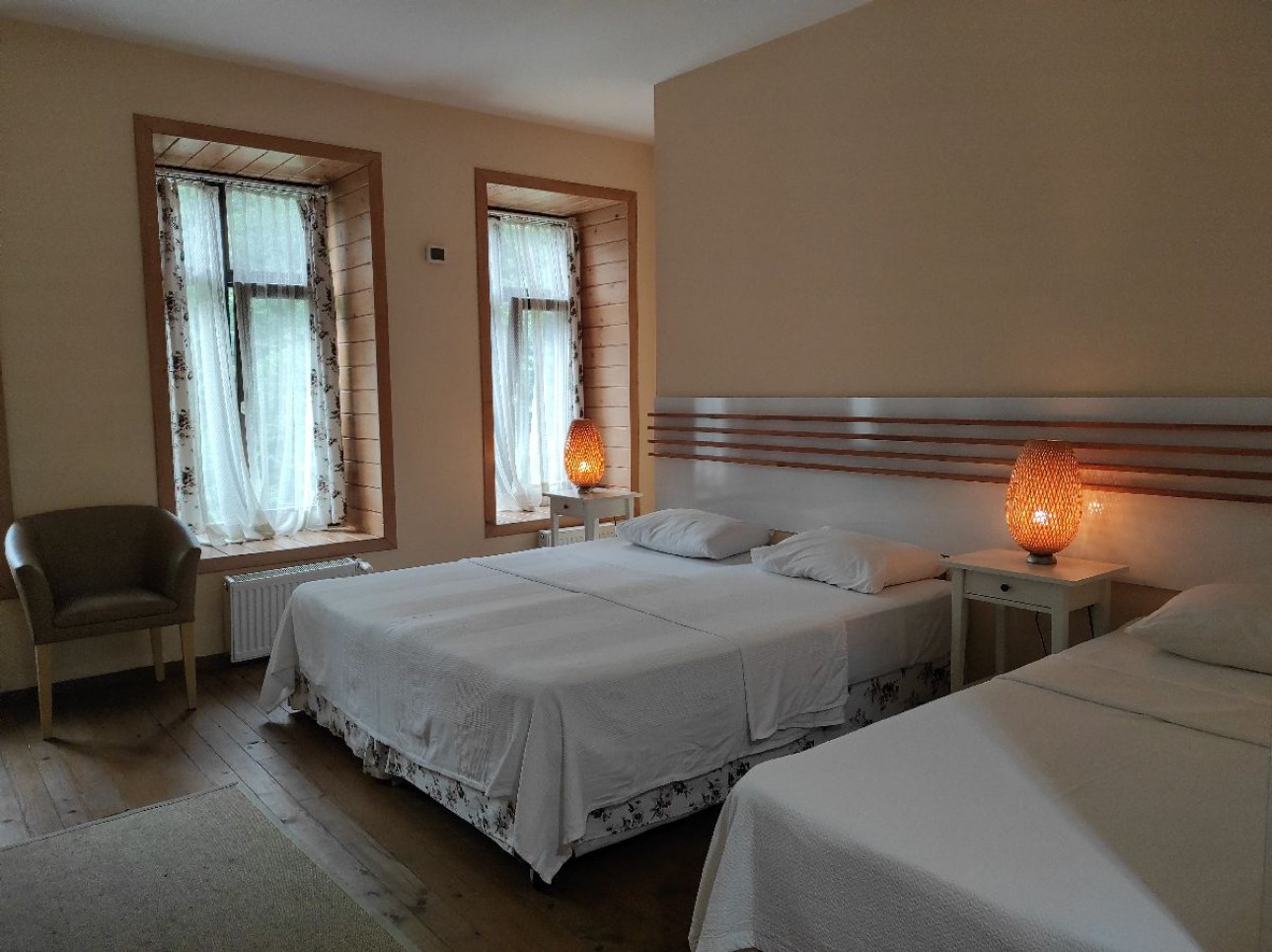 Manzaralı Triple Odalarımız 30-32 m2 genişliğine sahiptir. Odamız muhteşem dağ manzarasına hakimdir.